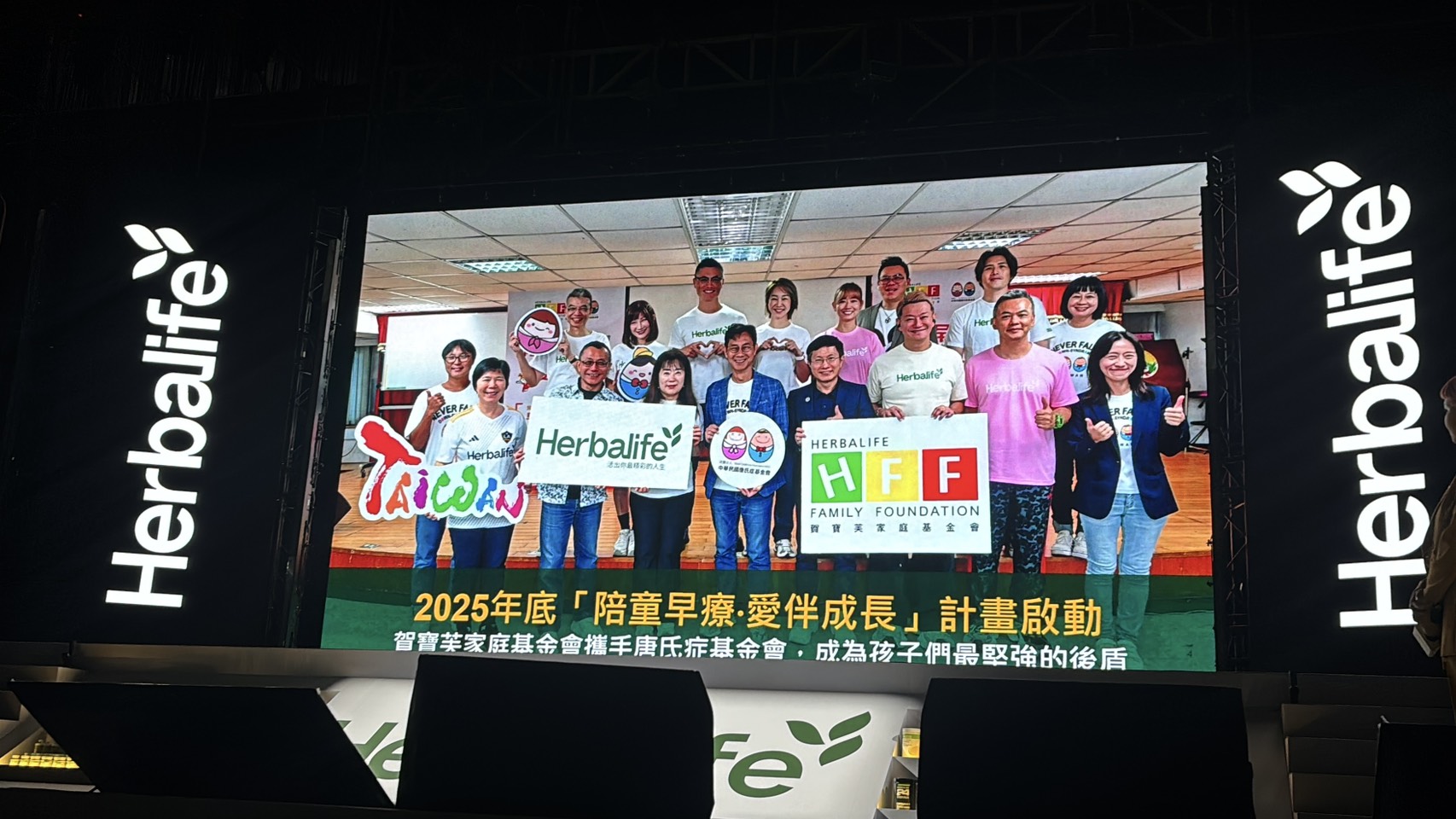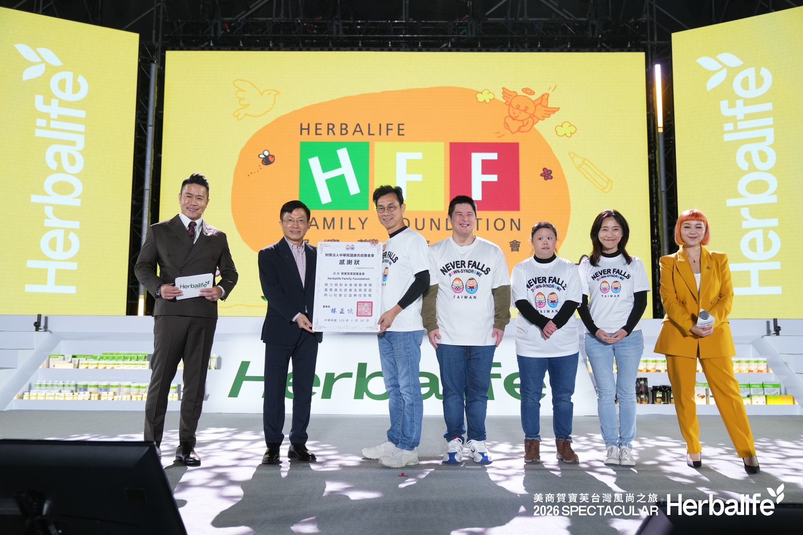 1/10(六)唐氏症基金會受邀參加2026年度賀寶芙風尚之旅,在林口體育館舉辦,整場約近9,000人,此活動為賀寶芙每年度的重要大會,並見證賀寶芙家庭基金會與唐氏症基金會自 2025 年起攜手推動早期療育服務的重要里程碑。
