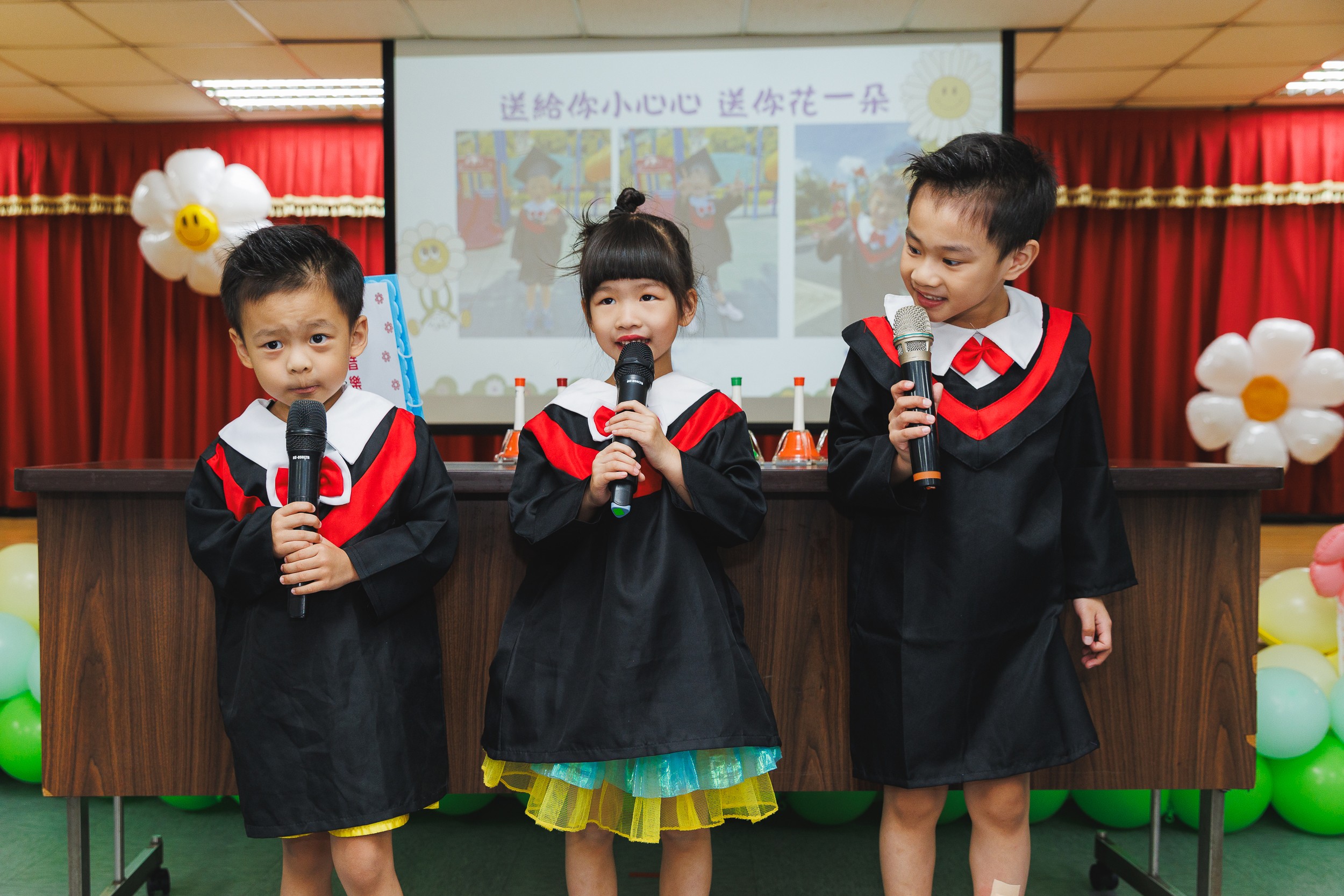 老師的一大步、孩子的一小步。今年愛家畢業典禮以「花園派對,童樂啟程」為主題,象徵孩子們在愛家全體老師努力的呵護與陪伴下,即使需要花費非常多的心力,但終究看到孩子們綻放出新芽,為未來的茁壯成長做好準備。表演中,孩子們透過舞蹈與節奏的結合,詮釋從幼苗到花朵的成長歷程,每一個舞步都是他們努力的印記。